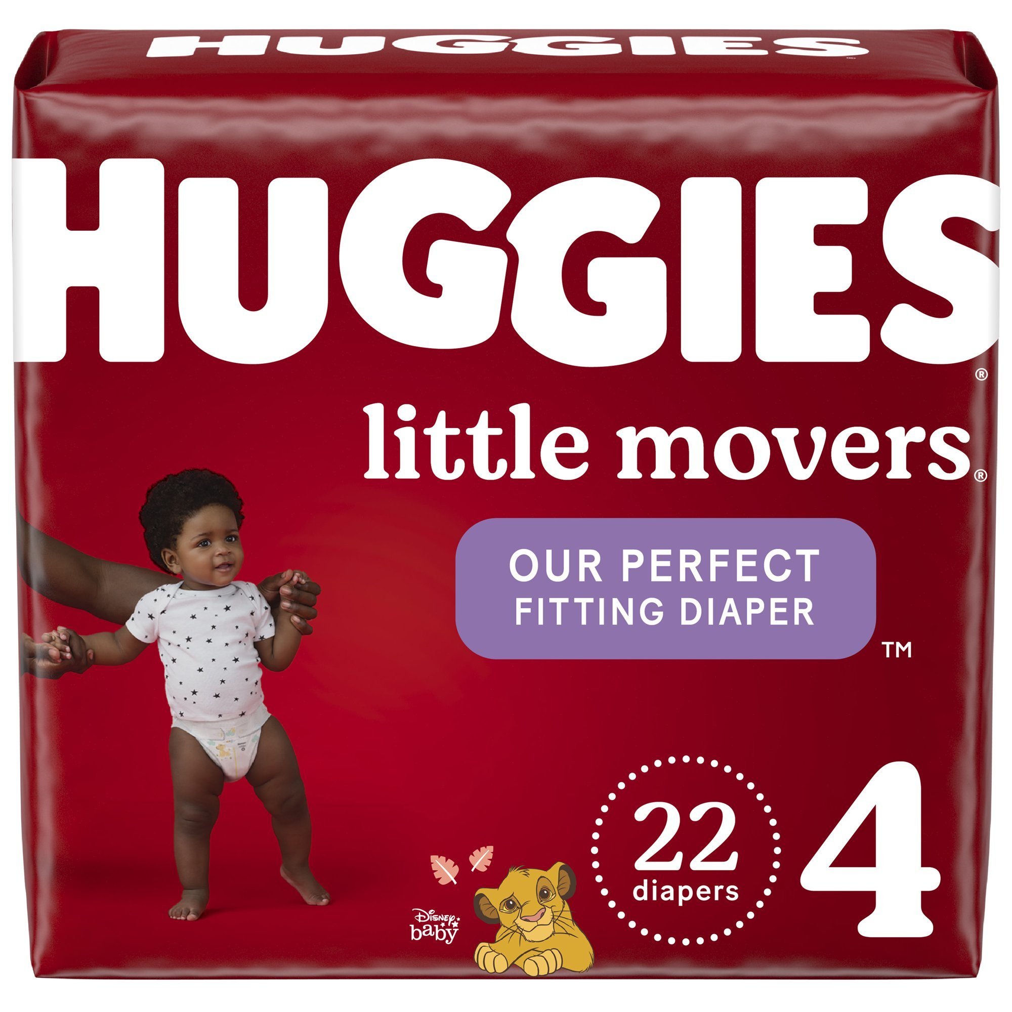 22 Huggies Little Movers Baby Diapers; size 4 (22-37 lbs); packaging may vary